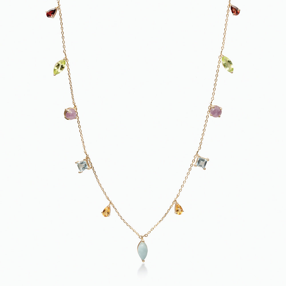 Elevate your style with our AlJawhara Collection, where elegance meets individuality. Crafted with exquisite 18K gold, each necklace features dangling gemstones that can be customized to your preference. Choose from a variety of gemstones, including birthstones, to create a piece that reflects your unique style and personality.